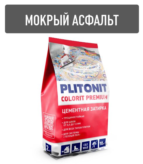Затирка для швов Plitonit Colorit Premium биоцидная, мокрый асфальт (пакет 2 кг)